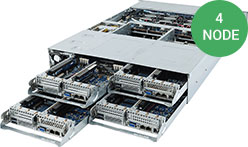 2U - 4 nodes rear access server system, 8x Low profile PCIe Gen4 x16 expansion slots, 8x 1Gb/s LAN ports, 4x dedicated management ports