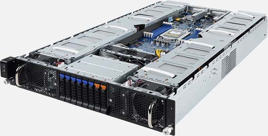 Up to 8x double slot GPU cards, 2x 10Gb/s SFP+ LAN ports, redundant power option, dedicated management port