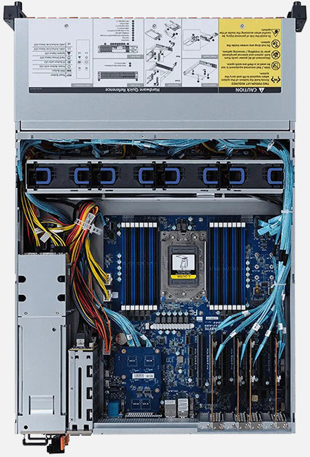 The Gigabyte R272-Z34 (6NR272Z34MR-00) can be configured with hot-swap drives, allowing you to remove and replace the drives whilst the system is running with no interruption.