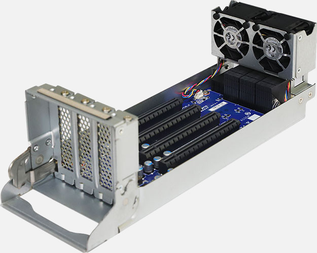 This server supports SATA drives, which are very cost-effective and adept at dealing with mass storage.