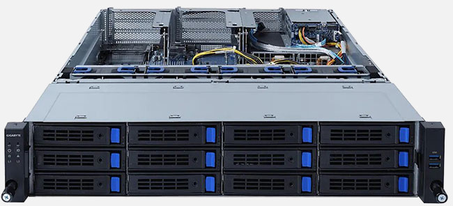 The Gigabyte R262-ZA1 (6NR262ZA1MR-00) can be configured with hot-swap drives, allowing you to remove and replace the drives whilst the system is running with no interruption.