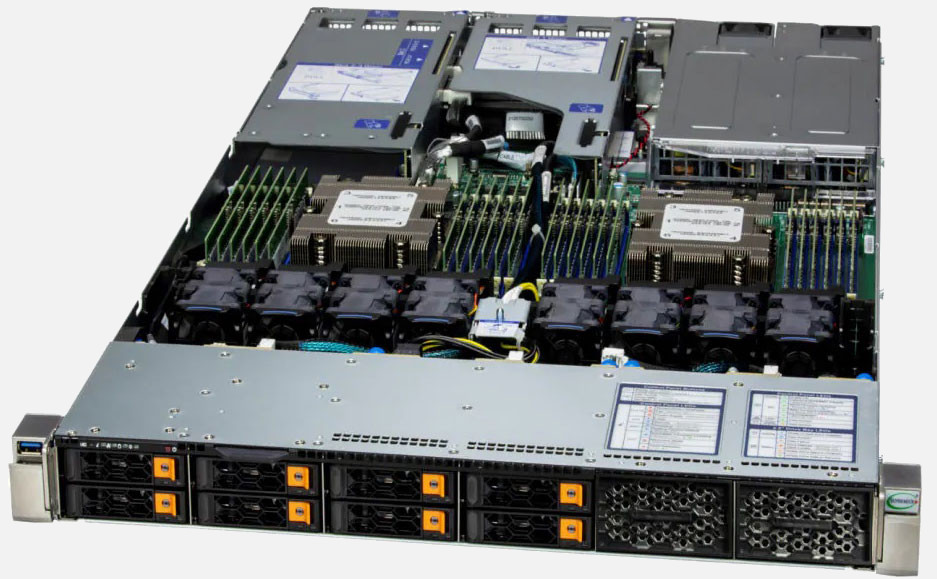 Dual AMD EPYC 9654 Processor, 2.3TB RAM, Supports up to 2x FHFL PCIe Gen5 x16 slots, 8x 2.5" SATA/NVMe Hybrid hot-swap drive bays.