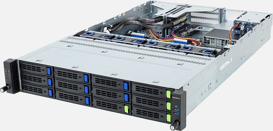 The Gigabyte R263-Z37 (6NR263Z37DR000AAH1) can be configured with hot-swap drives, allowing you to remove and replace the drives whilst the system is running with no interruption.