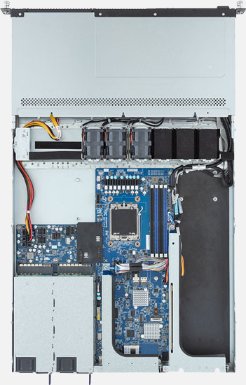 Single AMD EPYC 4004/ Ryzen 7000 series processor, 1x FHFL PCIe Gen5 x16 slot, 2x 1Gb/s LAN ports (Broadcom® BCM5720), Dual 800W Redundant PSU, 4x 3.5"/2.5" SATA hot-swappable drive bays.