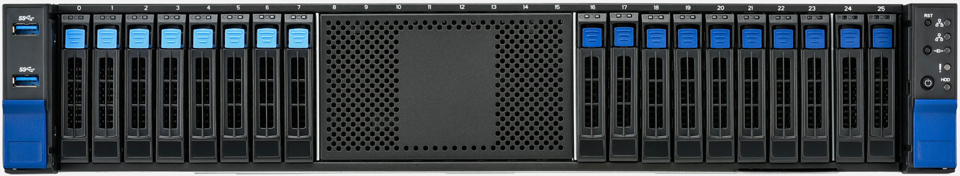 This server solution can be configured with 2.5" drives, which usually provide more energy efficiency, cost efficiency and boosted flexibility.