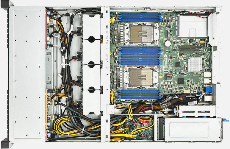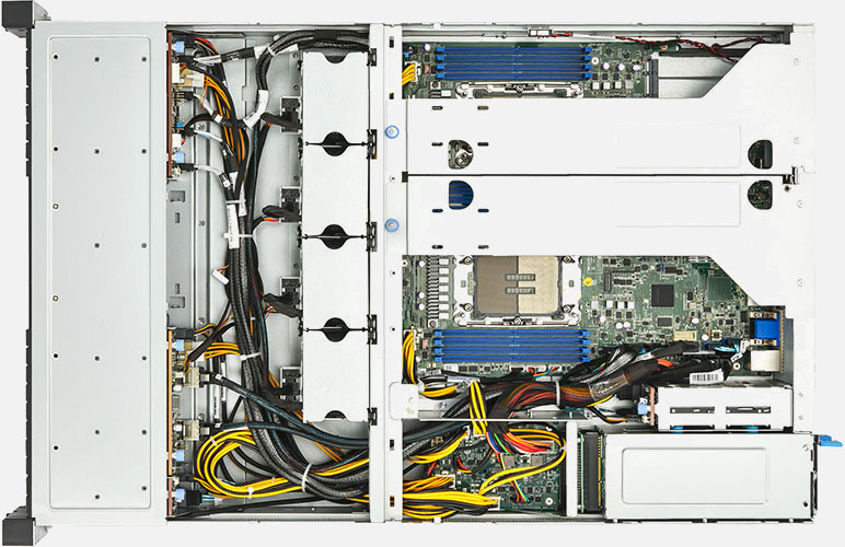 2U Dual 4th Gen Xeon CPU, 16 DIMM HPC / VM Server, 2x FH/HL PCIe Gen 5.0 x16 slots. 10x SATA/8x NVMe hot swap drive bays, 1200W Redundant power supply.