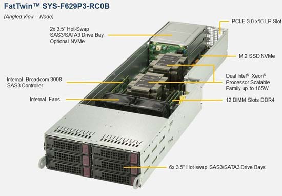 The Supermicro SuperServer F629P3-RC0B | SYS-F629P3-RC0B supports the Intel Intel Xeon Scalable Processors 2nd Generation family in a high-density 4U form-factor. These SuperServers are ideal for network infrastructure, front-end enterprise, and minimal-downtime cluster server systems.