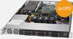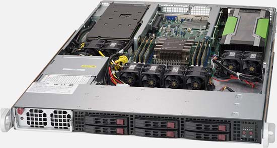 This system can be configured with 6x hot-swap 2.5 SAS/SATA drives and is equipped with 2x PCI-E x16 expansion slots. For power it features a 1400W high-efficiency power supply and for networking it has 2x 10GBase-T LAN ports via Intel X550.