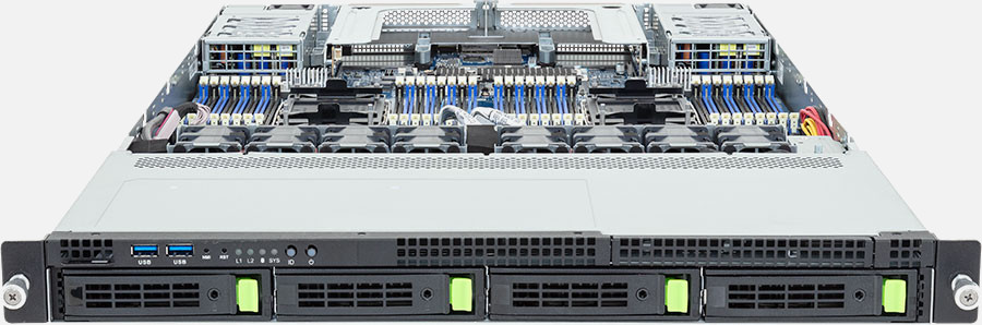 The Gigabyte R184-S90 (6NR184S90DR000AAV1) can be configured with hot-swap drives, allowing you to remove and replace the drives whilst the system is running with no interruption.