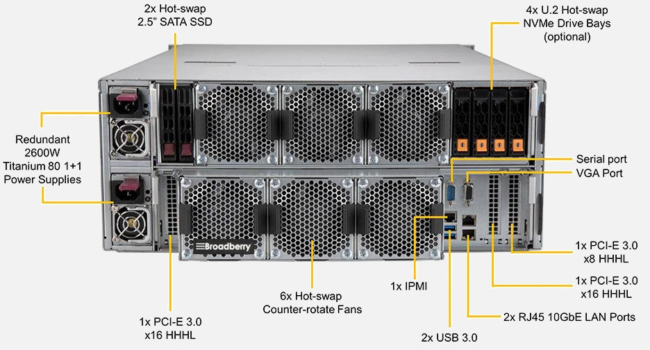 Feature-rich IPMI with out of band management and redfish API to allow easy management and monitoring of your Broadberry systems.