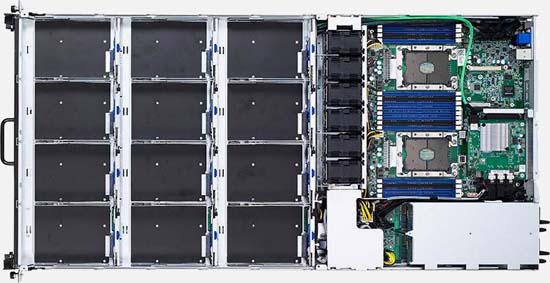 This server solution has a 2TB maximum capacity and can be configured 12x 3.5 SAS/SATA drives and 4x 2.5 NVMe/SATA drives.