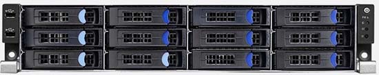 This server supports SATA drives, which are very cost-effective and adept at dealing with mass storage.