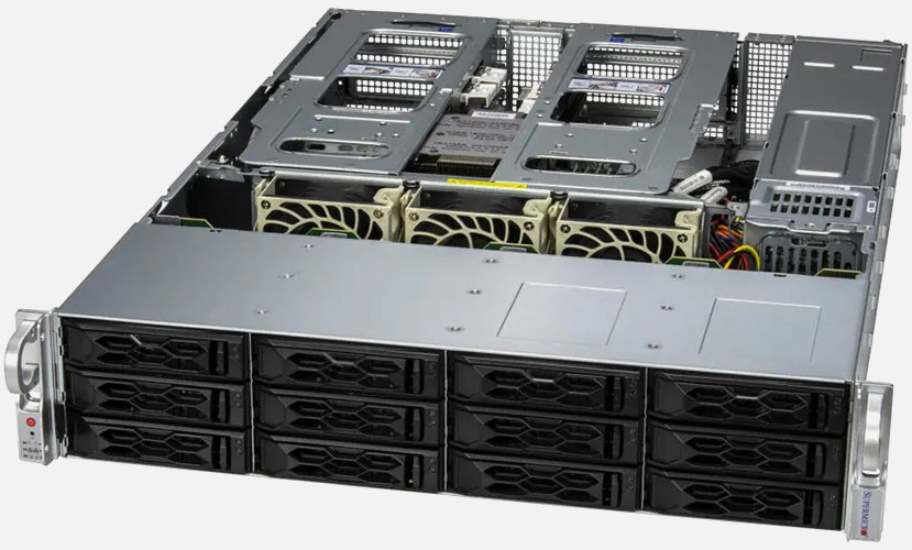 Optimised for web server, cloud computing and data centre use. AMD EPYC 9004 Series Processor. Dual Redundant power supply. 12x 3.5/2.5" hot-swap SATA/SAS drive bays, 4x 3.5" NVMe hybrid drives