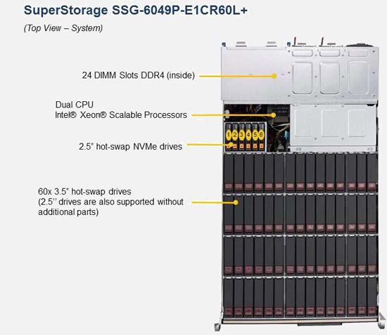 Configure the Supermicro SSG-6049P-E1CR60L+ SuperStorage | 6049P-E1CR60L+ with 3.5" drives. These drives are more cost-effective, offer a larger storage capacity and offer more flexibility.