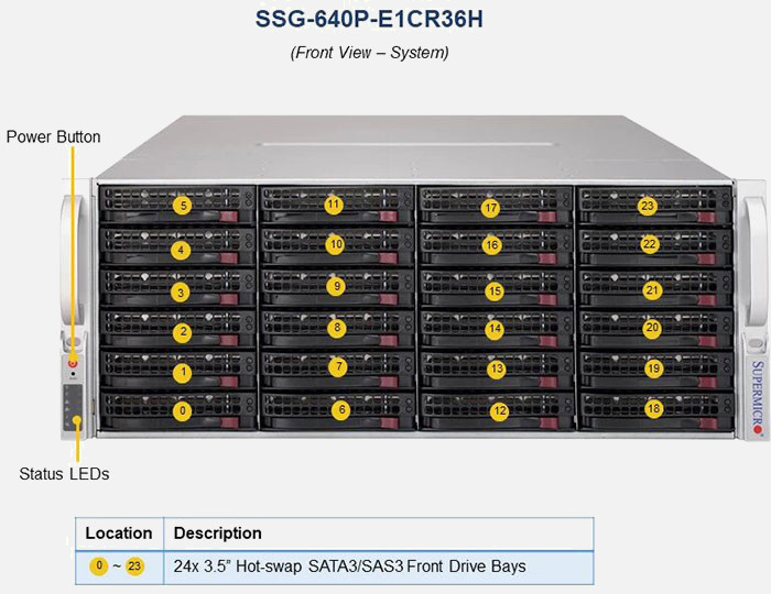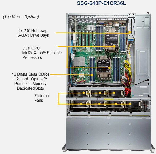 The Supermicro Storage SuperServer SSG-640P-E1CR36H | SSG-640P-E1CR36H boasts 6 PCI-Express slots for expandability, and as with all of our servers it can be fully customised online