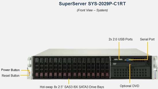 The Supermicro SuperServer 2029P-C1RT | SYS-2029P-C1RT can be configured with 2.5" drives, a more space efficient and low noise option. These drives also offer energy savings and increased flexibility.