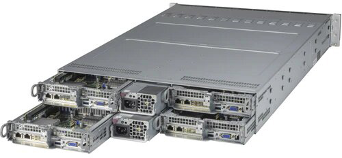 4 node system ideal for big data/big science, hyperconverged infrastructure and HPC. 2x PCI-E 4.0 x16 slots, 1x PCI-E 4.0 x8 slot and 16 DIMMs of memory per node.