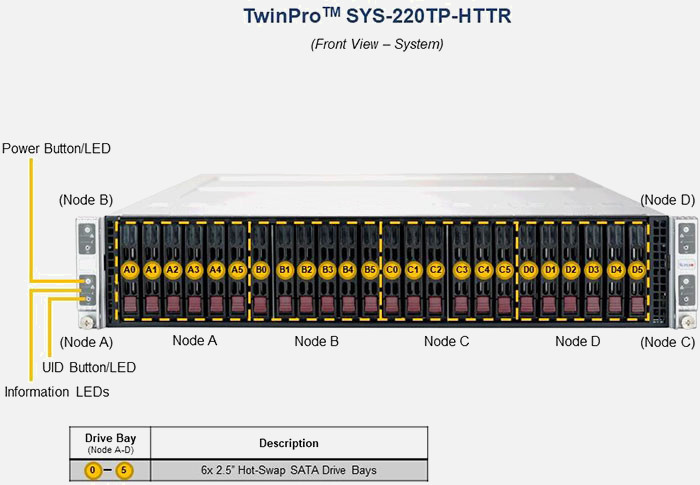 The Supermicro Twin SuperServer SYS-220TP-HTTR | SYS-220TP-HTTR features hot-swap hard drives, giving you more flexibility and allowing you to remove drives without having to shut down the system.
