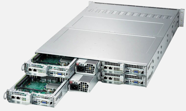 4 node system ideal for big data/big science, hyperconverged infrastructure and HPC. Intel X710 Dual port 10GBase-T LAN onboard per node. 2x PCI-E 4.0 x16, 1x PCI-E 4.0 x8 slots.