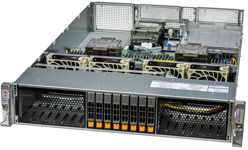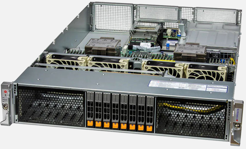 Ideal for virtualisation, cloud computing, enterprise server. Up to 4x PCI-E 5.0 x16 slots, 4x PCI-E 5.0 x8 slots. Redundant 800W/1200W Titanium Power Supply, 8x 2.5" hot-swap NVMe/SATA/SAS drive bays