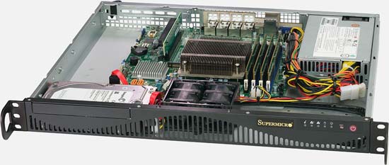 Entry Level, Cost Effective Server. Compact, less than 15" Depth. 4x GbE LAN ports, 1x dedicated IPMI LAN.