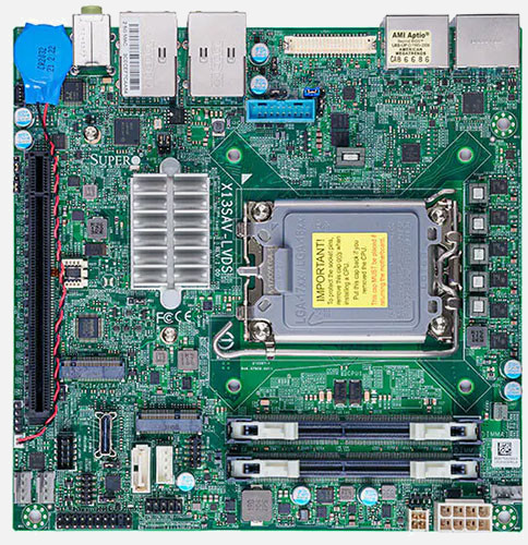 The Supermicro IoT SuperServer 521AD-TN2 | SYS-521AD-TN2 supports the Intel Intel Core i3, i5, i7 12th Generation, Intel Core i3, i5, i7, i9 13th Generation family in a high-density Box PC form-factor. These SuperServers are ideal for network infrastructure, front-end enterprise, and minimal-downtime cluster server systems.