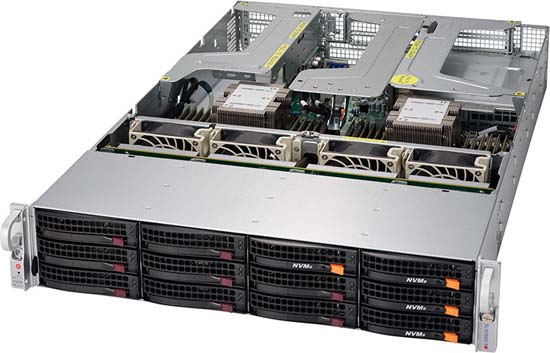 This system is capable of supporting up to 12 DIMMS per CPU. That’s a significant advancement on the previous limit, which was 9 DIMMS per CPU.