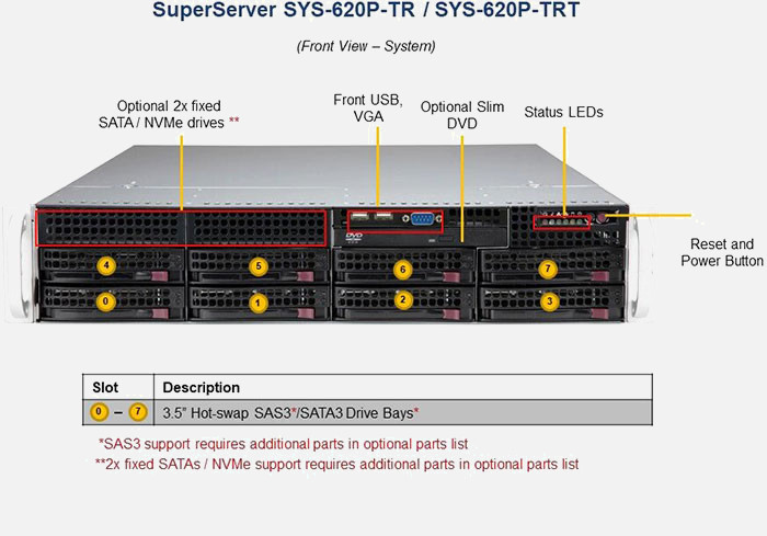 The Supermicro SuperServer SYS-620P-TR | SYS-620P-TR features hot-swap hard drives, giving you more flexibility and allowing you to remove drives without having to shut down the system.