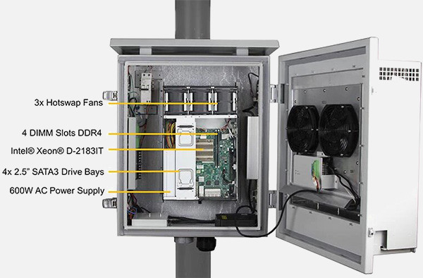 Optimised for 5G Radio Access Network (RAN), Multi-Access Edge Computing (MEC) and Edge AI Inferencing, GR-487-CORE compliant, tamperproof design, 71 dBA noise.