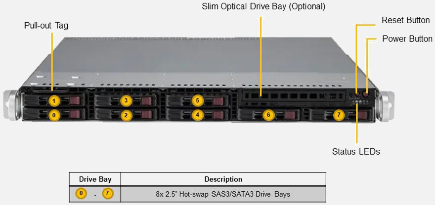 The Supermicro UP SuperServer 110T-M | SYS-110T-M features hot-swap hard drives, giving you more flexibility and allowing you to remove drives without having to shut down the system.