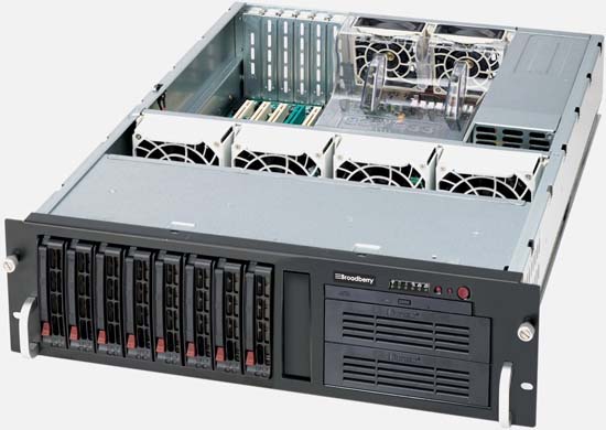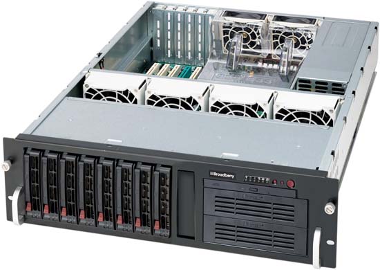 The CyberServe XE3-308S is a high density 3U rackmount server with 8x 3.5" hard drives, and 2 x 5.25" Drive bays.